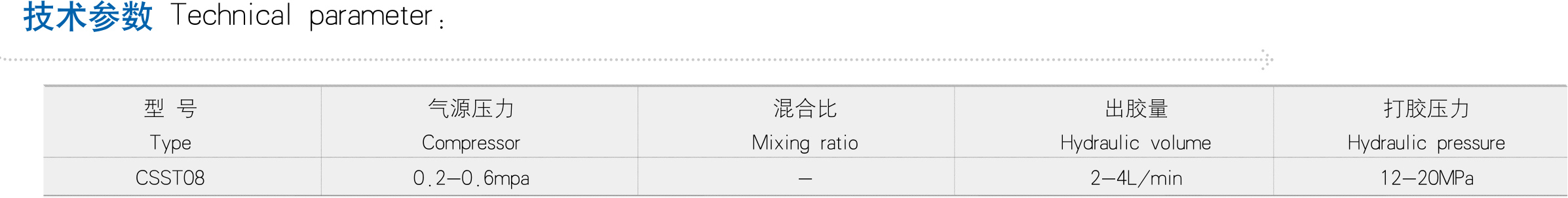 Glue gun mixing, glue gun light and convenient operation,Convenient maintenance of equipmentimports of seal , the seal can ensure the goodcondition ,to extend the service life, The use of safe and reliable,the pressue excds the scope of use utomatic unloading, after sale service andtimely , to ensure that users .