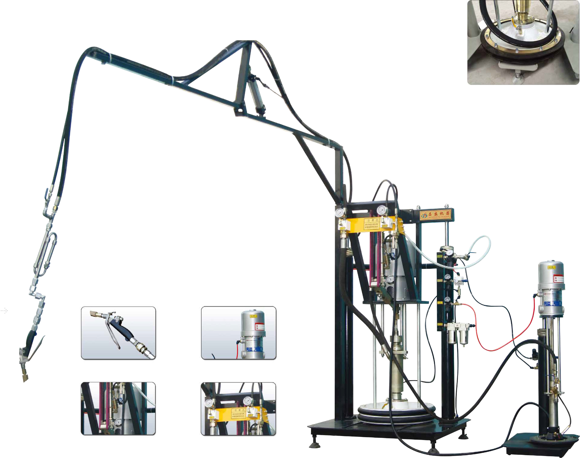 該機廣泛適用于聚硫膠、聚氨脂膠、硅酮結構膠等精確配比。均勻混合和快速噴涂作業的場合,是理想的玻璃粘接生產設備。采用原裝進口氣動馬達及專用射膠槍.并且帶有膠槍輔助系統,操作更輕便快捷,適合大規模中空玻璃和幕墻的生產。